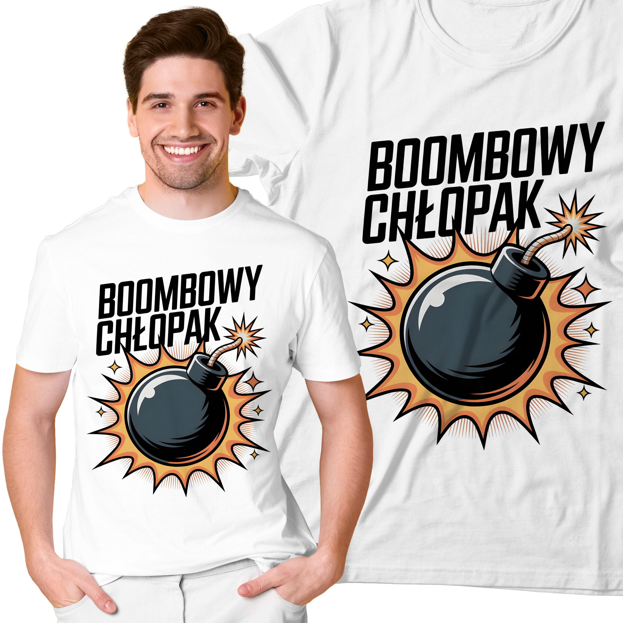 Szukasz pomysłu na oryginalny, a jednocześnie praktyczny upominek? Koszulka z nadrukiem „BOMBOWY CHŁOPAK” to strzał w dziesiątkę! Nasze wzory łączą humor, styl i wygodę, dzięki czemu sprawdzą się zarówno na co dzień, jak i podczas wyjątkowych okazji – urodzin, rocznic czy oczywiście Dnia Chłopaka. To prezent, który nie tylko rozbawi, ale też stanie się świetną pamiątką. Koszulka została uszyta z wysokiej jakości 100% bawełny, dzięki czemu jest przewiewna, komfortowa i wytrzymała. Trwały nadruk gwarantuje, że prezent będzie wyglądać świetnie przez długi czas.