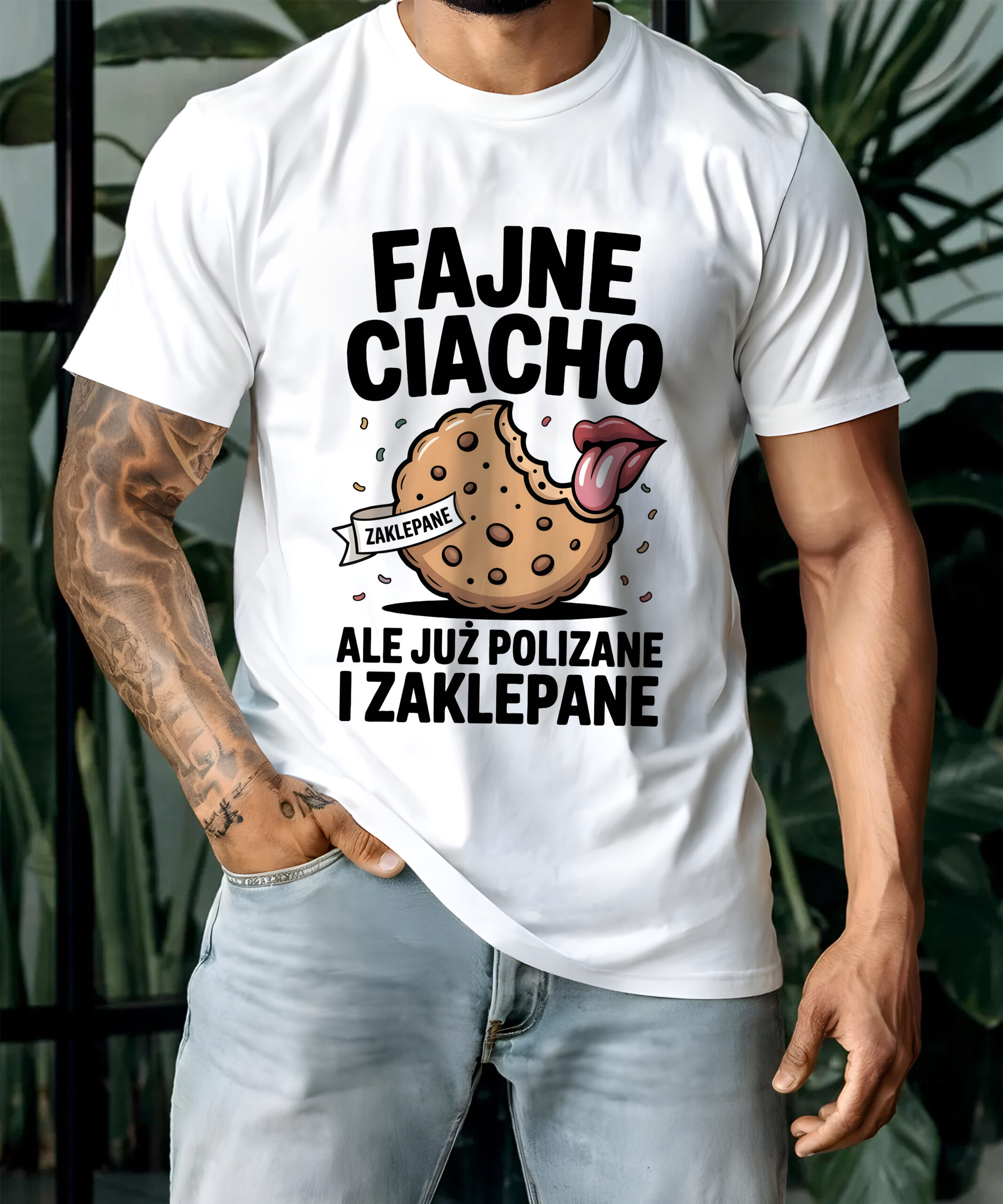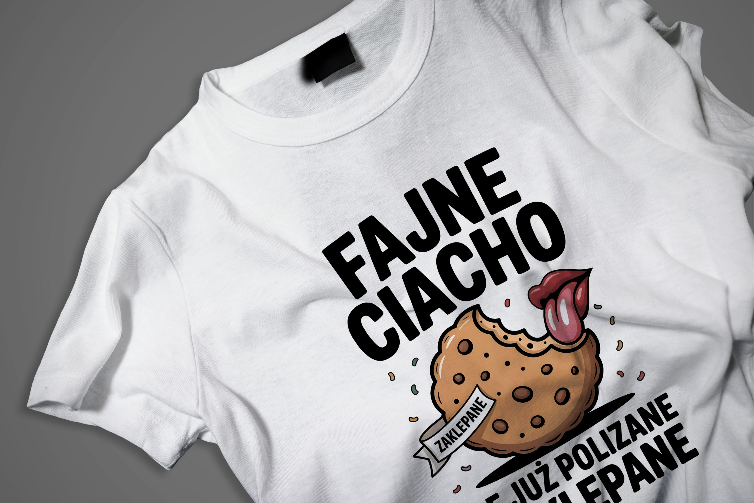 ⭐ Koszulka FAJNE CIACHO ALE JUŻ POLIZANE I ZAKLEPANE