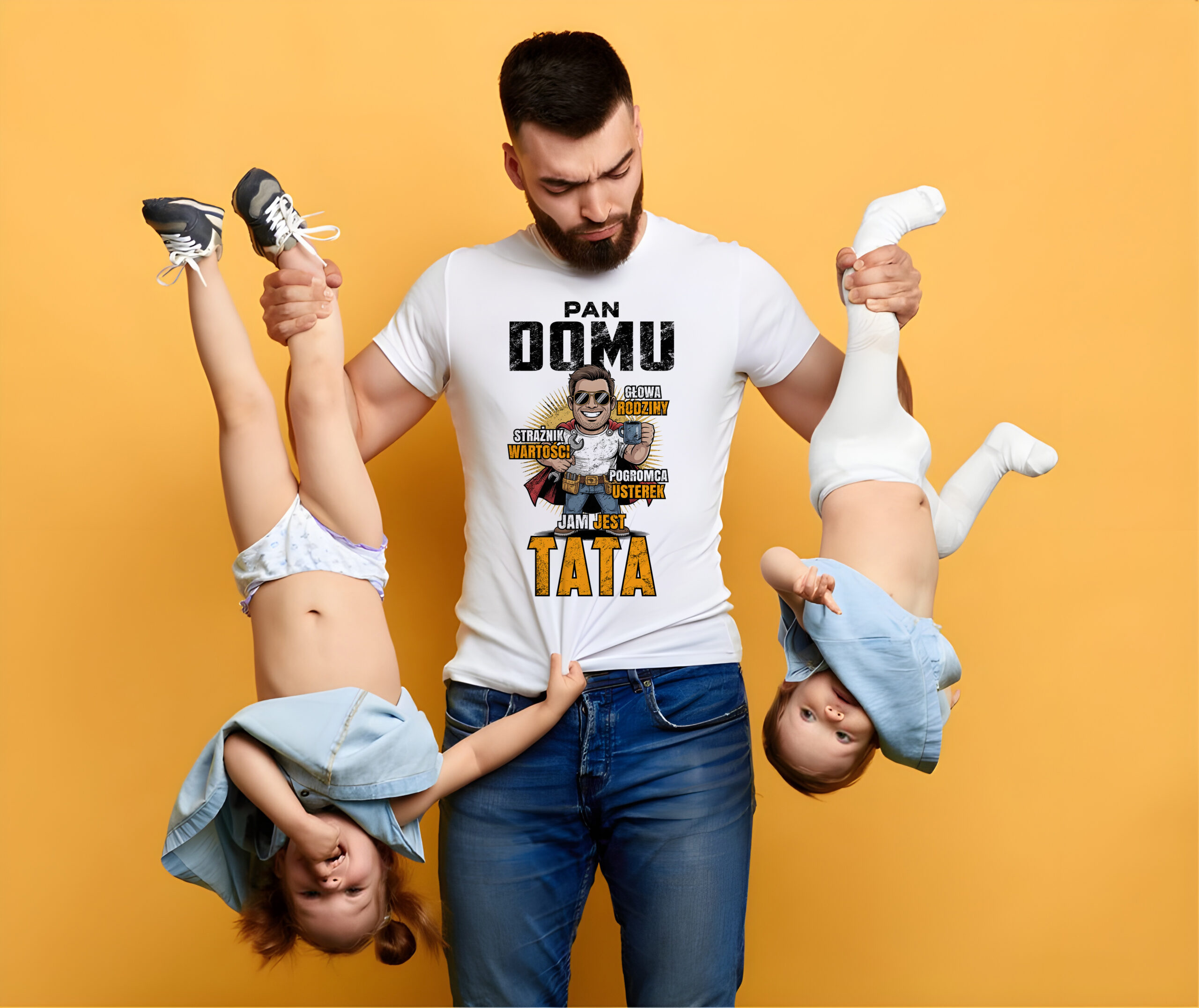 W naszej kolekcji znajdziesz humorystyczne, motywacyjne i wzruszające wzory, które doskonale oddadzą charakter Twojego taty. Niezależnie od tego, czy jest mistrzem majsterkowania, fanem sportu, królem grilla, czy po prostu super bohaterem w Twoim życiu – mamy dla niego idealny nadruk! Możesz też postawić na personalizację i dodać imię taty lub własne przesłanie, czyniąc prezent jeszcze bardziej wyjątkowym. Jeśli zatem szukasz oryginalnego prezentu na Dzień Ojca, koszulka z nadrukiem „pan domu, głowa rodziny, strażnik wartości, jam jest tata” z pewnością sprawi mu prawdziwą radość!