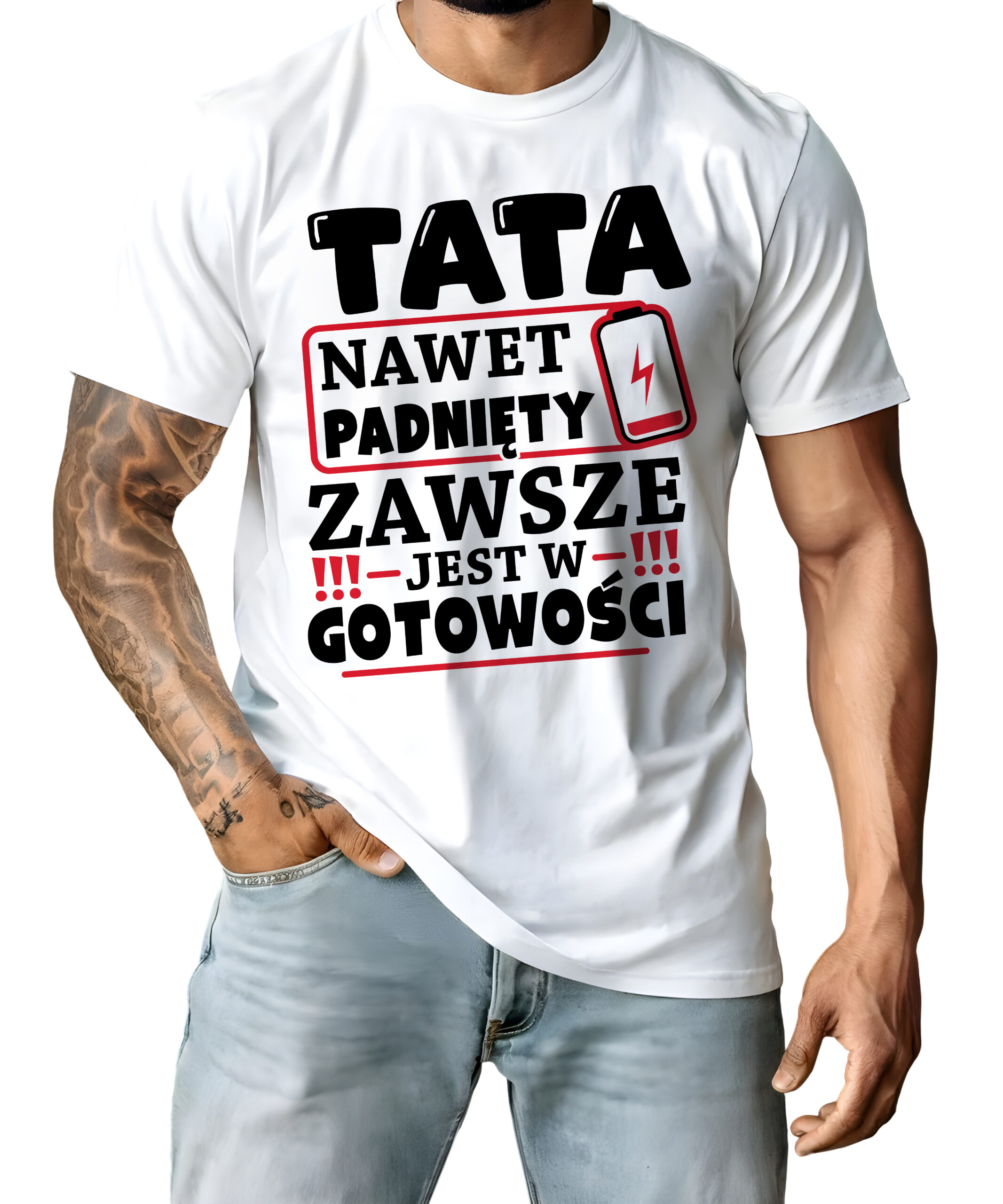 Koszulka z nadrukiem „TATA nawet padnięty zawsze jest w gotowości” – hołd dla siły i oddania każdego ojca! ✨