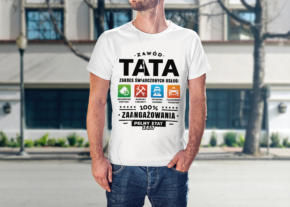 Dzień Ojca to idealna okazja, aby podziękować tacie za wszystko, co dla Ciebie zrobił. Zaskocz go oryginalną koszulką z nadrukiem, która nie tylko wywoła uśmiech, ale stanie się jego ulubionym elementem garderoby! Nasze koszulki to doskonały prezent na Dzień Ojca, łączący wysoką jakość materiałów z unikalnym designem. Koszulka została wykonana z wysokiej jakości 100% bawełny, dzięki czemu jest przewiewna, komfortowa i wytrzymała. Nadruk wykonujemy niezniszczalną metodą, która zapewnia odporność na wielokrotne pranie.