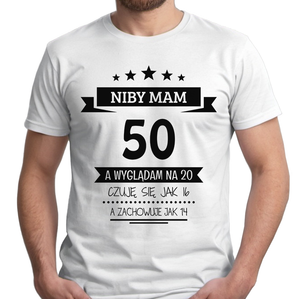 ⭐ KOSZULKA NIBY MAM 50 A WYGLĄDAM NA 20 CZUJĘ SIĘ JAK 16 A ZACHOWUJE JAK 14